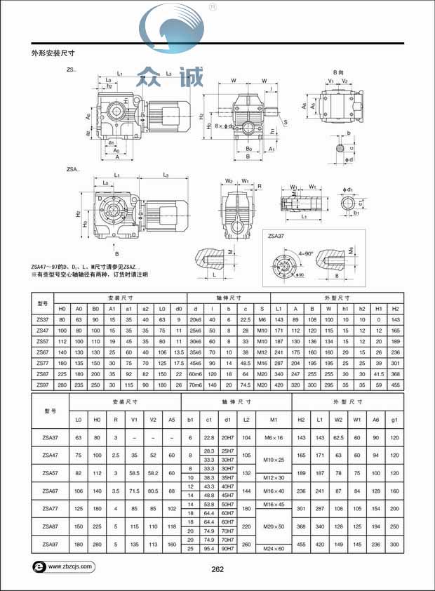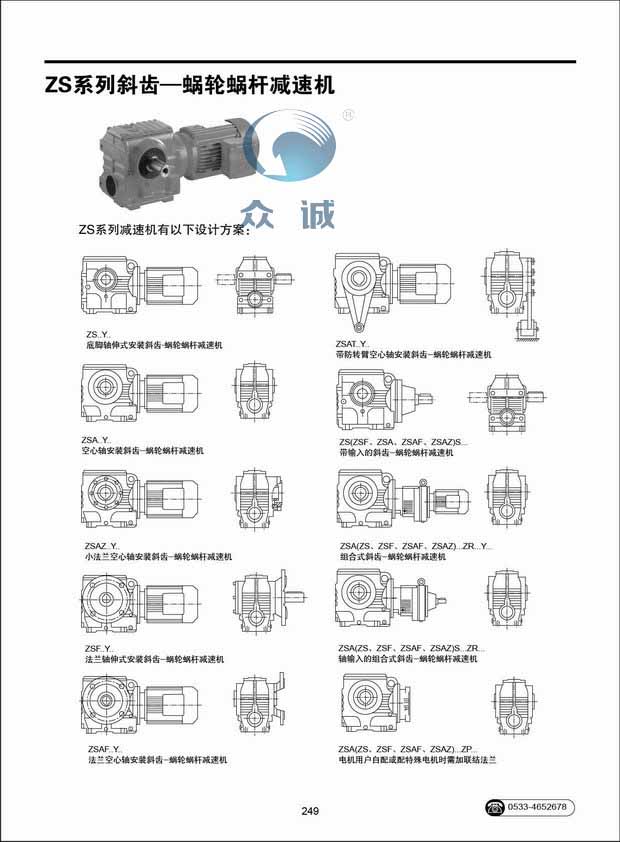 ZS系列齒輪-蝸桿減速電機(jī)系列產(chǎn)品由減速器與配用電動(dòng)機(jī)組合而成;減速器的輸出軸與電動(dòng)機(jī)軸線(xiàn)正交,減速器可備置三—四個(gè)安裝平面以適應(yīng)不同的安裝需要;